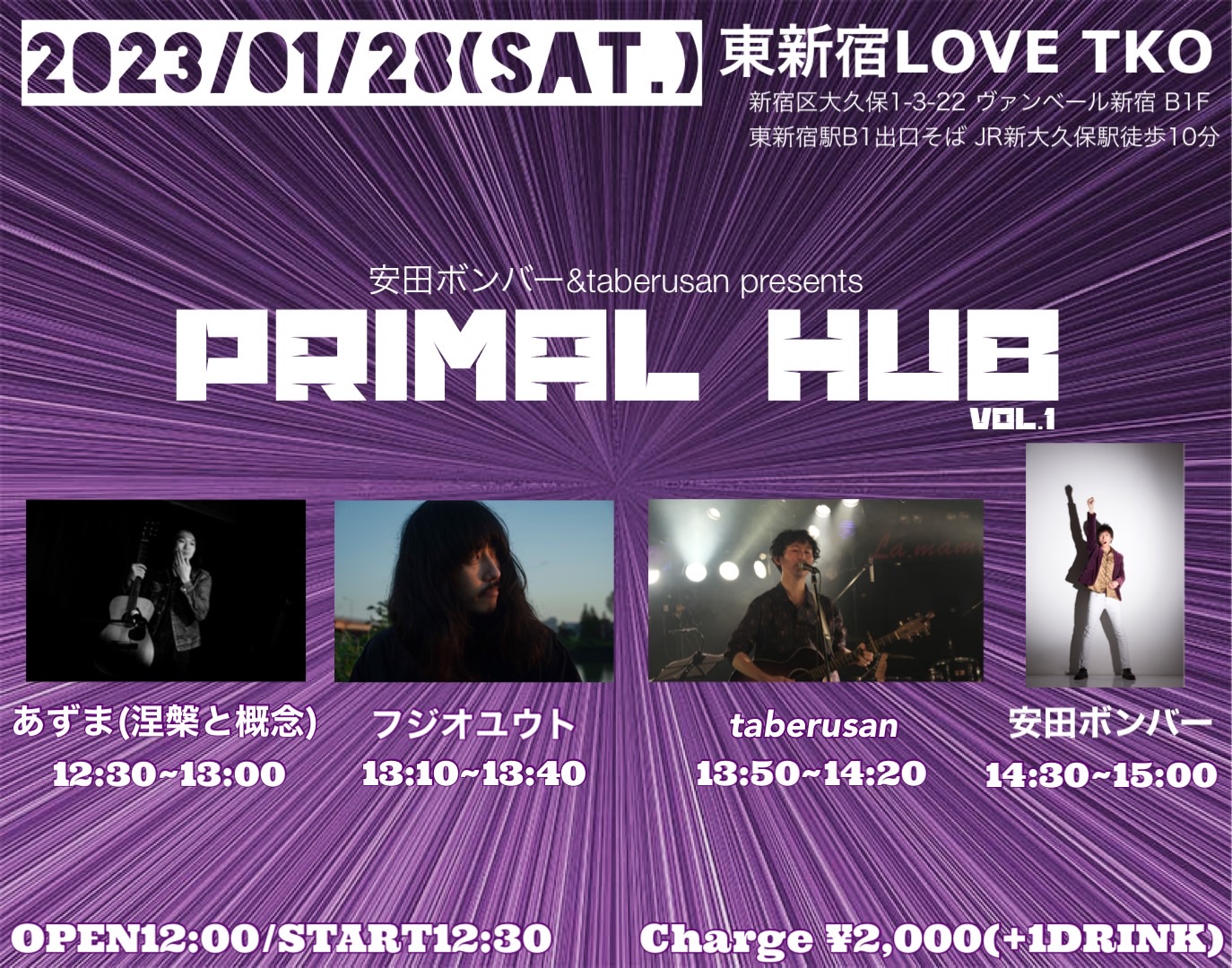 安田ボンバー&taberusan presents 「PRIMAL HUB」開催!